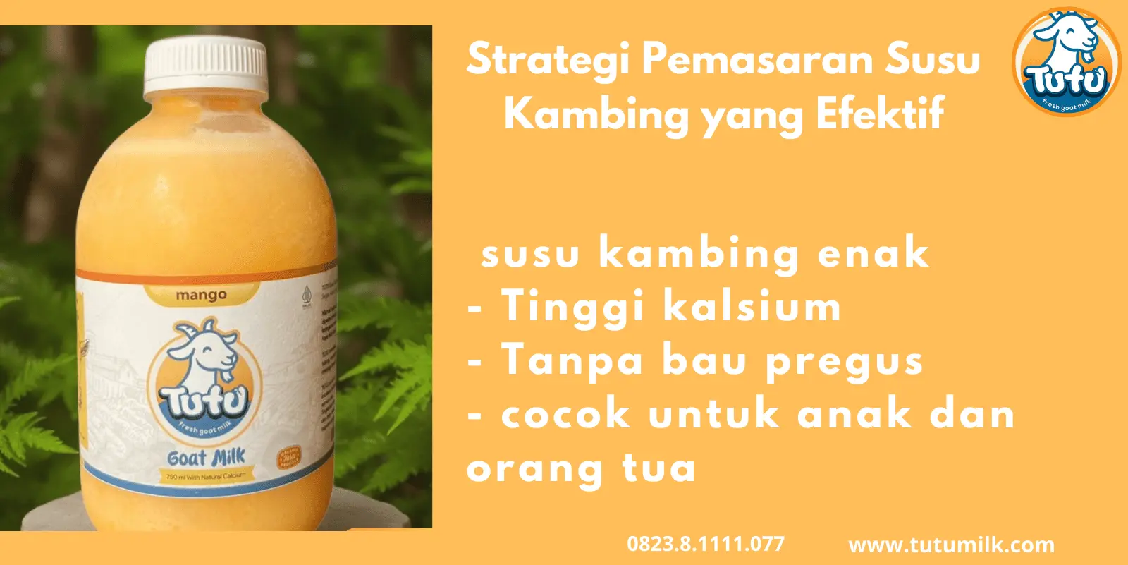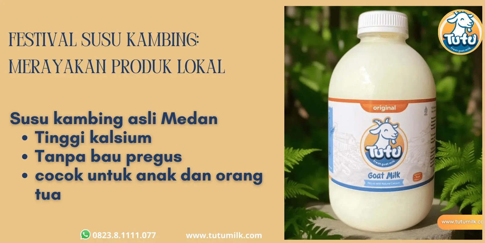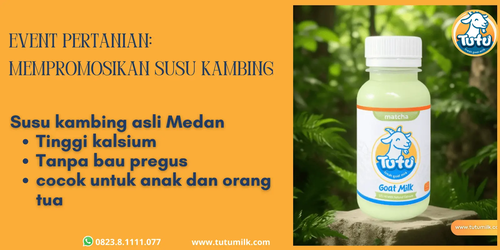 TUTU adalah susu kambing pasteurisasi yang diproses dengan standar higienis, tanpa bahan pengawet, telah bersertifikat halal, dan lulus uji AKG (Angka Kecukupan Gizi). Hadir dalam 8 varian rasa, TUTU tinggi kalsium, kaya nutrisi, baik untuk menjaga kesehatan paru-paru, menguatkan tulang, serta menunjang daya tahan tubuh. Cocok dikonsumsi oleh anak-anak, remaja, dewasa, ibu hamil, lansia, penderita intoleransi laktosa, penderita gangguan paru, hingga perokok aktif maupun pasif.